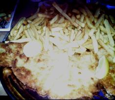 Ich im Kampf mit 2 l Bier den ich leider verlor. Ein etwas größeres Schnitzel zum Abendbrot.